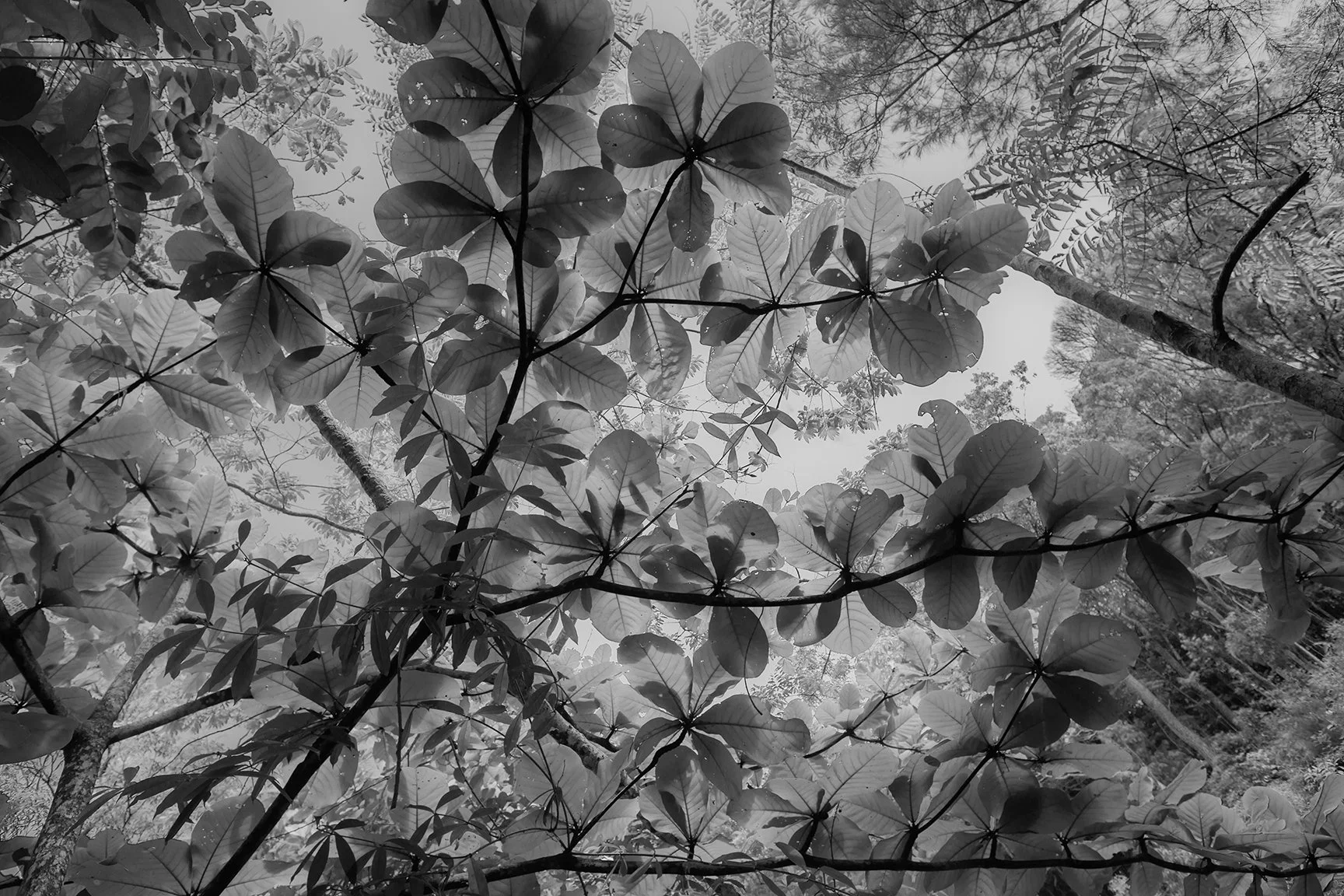 Eyes wide toward the sky, CUT to us rushing out of the forest and to the car. We leave quickly to the next hiking destination. WIPE LEFT to us in the next forest. We walk for 2miles round trip, but the destination of where we were heading was too far, and turn back halfway. We see spiders all along the floor, and it begins to rain. We take cover under our rain ponchos, and watch the ground for where we step, and notice more snake nests above us. CUT to us rushing out of this forest and to the car.