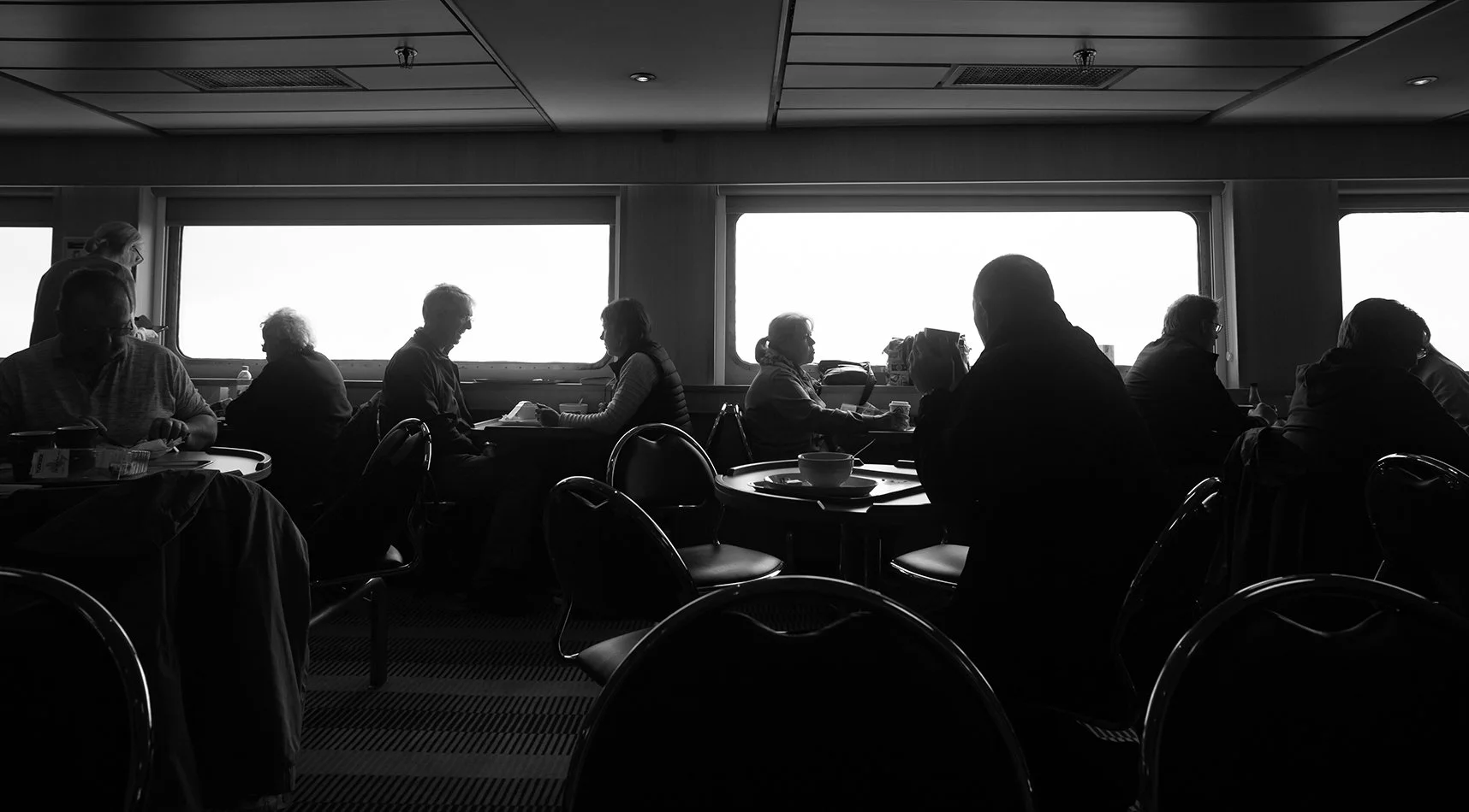 The ferry is easy. We keep warm with some tea as the ship rocks back and forth. We don’t have calm seas, and the ship sways. I'd noticed the tables in the cafeteria have lips on them so the food doesn't slide off. Glad it's there, because we need it now. We befriend a few Germans sitting next to us- They often get excited to see me because I look so very German, although I'm not German at all. Thankfully they weren’t disappointed when I told them I’m from the States. They were two couples and one of the ladies hated how the sea rocked the boat, but found it quite amusing that I thought it was fun.