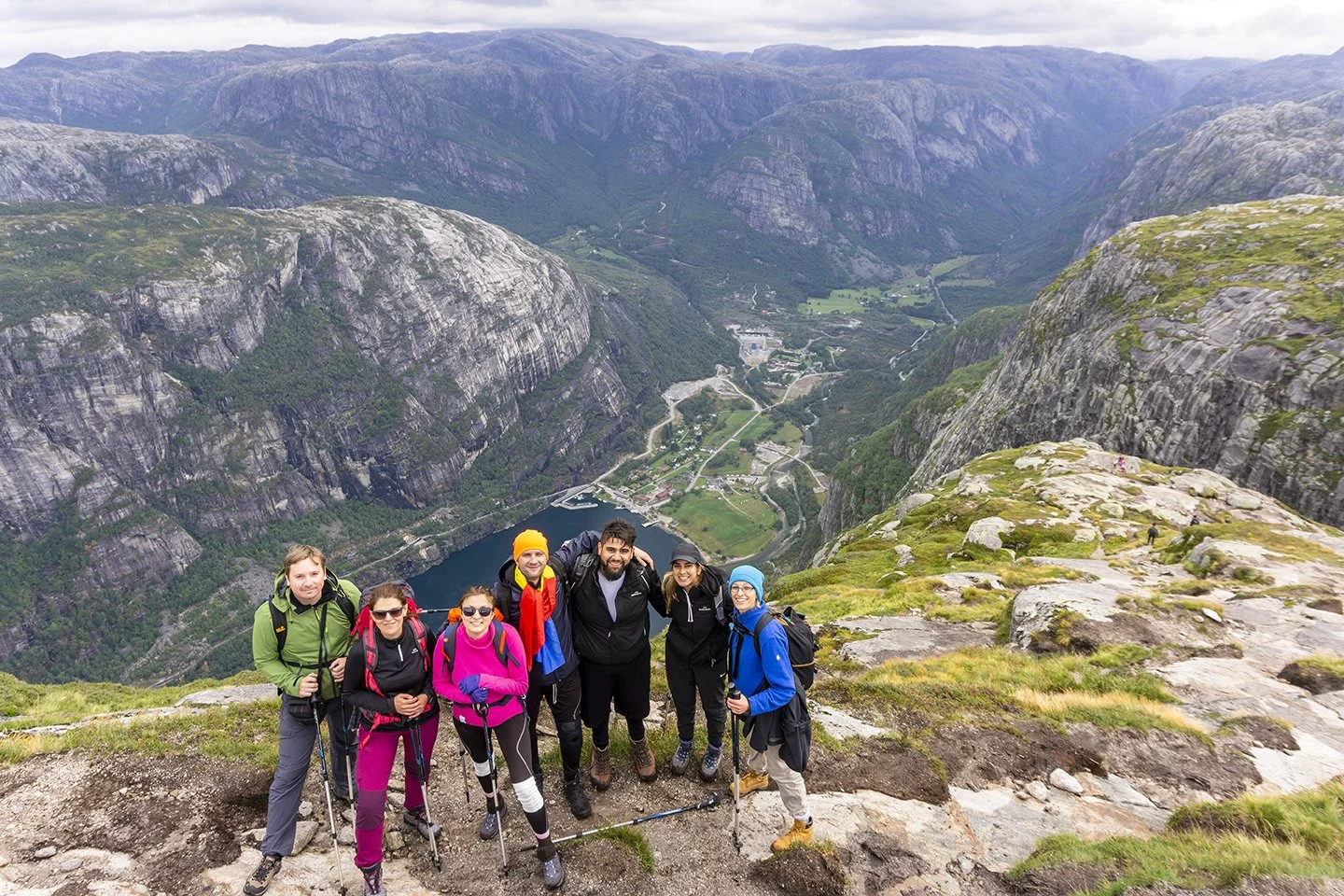 Fear began to seep in, and I could start to feel my muscles tense, and my legs buckle. I know you're not supposed to jump from the boulder to the wall, but with fear gripping me tighter, Instagram can suck my uncle's hairy nut sack! With a rush of adrenaline, I jumped off the boulder and onto the ledge, clinging to the rock wall. I put my fingers back in the hook and scaled across the side, carefully stepping down onto solid land. The Romanian husband has a video of me doing this, and I have to buy the photos of my standing on it in my SVENSSON jersey, so that media will come later. *A newspaper in Norway recently published an article of idiot tourists coming to Kjerag to risk their lives for social media. Although I joke about it, I didn't do this for the 'gram. This was on my bucket list, and like bungy jumping, I wanted to conquer my fear of heights...Even if my victory was briefly held. Worth it!