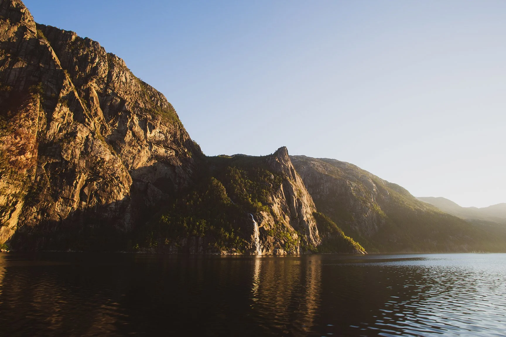 We started by taking a ferry through Lysefjord, the same fjord I was looking at from the peak at Preikestolen yesterday. We were lucky with weather and had the most spectacular view of the sun coming up on the water. Apparently, they call it, “The Fjord Of Lights”, and it’s obvious as to why when you see the sun touching the rocks and the water. It’s like you’re taking the ferry straight into Valhalla.